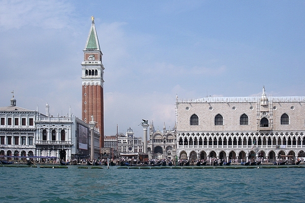 La veduta di Palazzo Ducale, della Piazzetta con le due colonne e dell'edificio sansoviniano della Libreria Marciana, sovrastata dalla mole del Campanile di San Marco, un tempo rappresentava la 'porta' principale per chi giungeva a Venezia, accesso diretto al cuore pulsante della città e di tutta la Repubblica Serenissima.