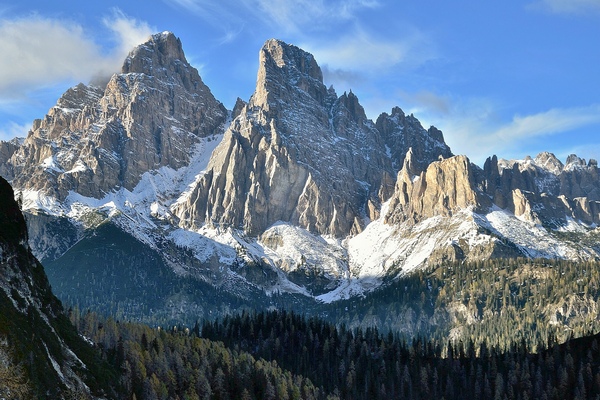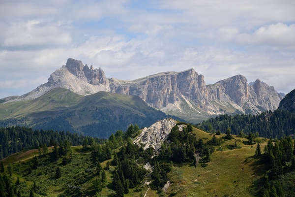 Dal Passo Staulanza, che collega la Val Zoldana con la Val Fiorentina, si può osservare il profilo aguzzo delle Crode di Forca Rossa e delle Cime di Val d'Arcia, sul versante settentrionale del Monte Pelmo, imponente massiccio dolomitico tradizionalmente noto come «Caregon» - ovvero Trono - del Padreterno.