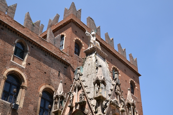 La statua equestre di Cangrande della Scala, già sul monumento funerario del condottiero, addossato alla parete esterna della chiesa di Santa Maria Antica, rappresenta una delle maggiori realizzazioni del genere in tutto il Trecento; la scultura originale, ora sostituita da una copia, è ricoverata per ragioni di conservazione nel Museo di Castelvecchio. (Foto Comune di Verona)