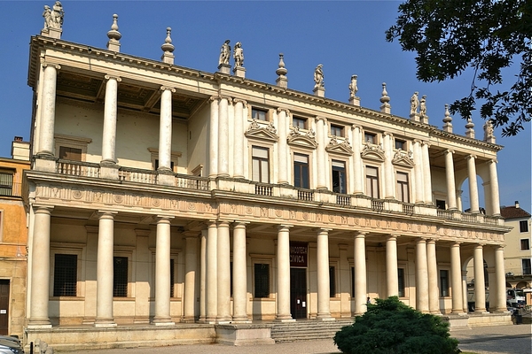 Concepita come residenza signorile suburbana, la villa, armoniosa sintesi dei due solidi geometrici più perfetti, il cubo e la sfera, si rapporta in misura ideale all'ambiente circostante, grazie alle quattro facciate identiche, riproponendo su ogni lato il modello del tempio classico, assai caro a Palladio. (Foto: Regione del Veneto)