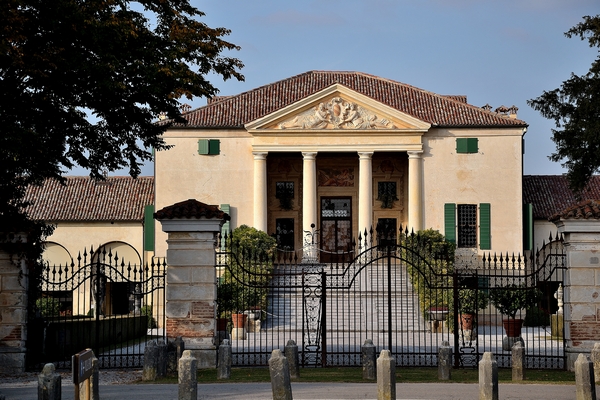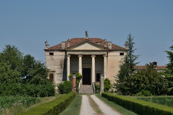 La villa del Palladio, sintesi delle tipologie di dimora signorile palaziale e di residenza rustica, si colloca nel cuore del piccolo centro veneto, con il fronte affacciato su un giardino, posto lungo la strada
