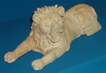 Il più antico dei leoni marmorei posti all'ingresso dell'Arsenale di Venezia è quello d'epoca arcaica, proveniente dall'isola di Delo, nell'arcipelago delle Cicladi, ove sono ancora visibili cinque esemplari analoghi; il corpo, che vediamo ora integrato con una testa moderna, mostra caratteri morfologici e stilistici tali da indicare una cronologia molto alta, addirittura alla fine del VII secolo a.C. (Foto Giovanni Dall'Orto, Wikimedia Commons)