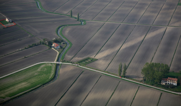I soilmark primaverili evidenziano bene la via Annia presso Ponte Canalat (Ceggia, VE) © Foto Dipartimento di Geografia - Università di Padova